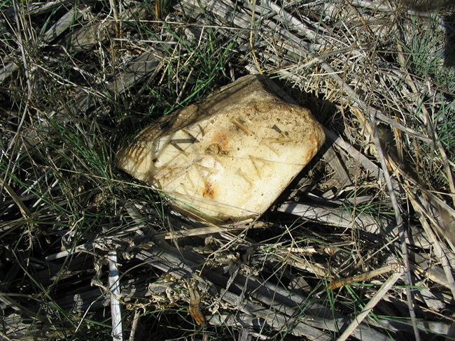 Another piece of a tombstone was found embedded in the top of a mound in the dump that the VA said contained biomedical wastes from the excavation of Brentwood School’s athletic fields.