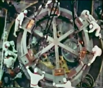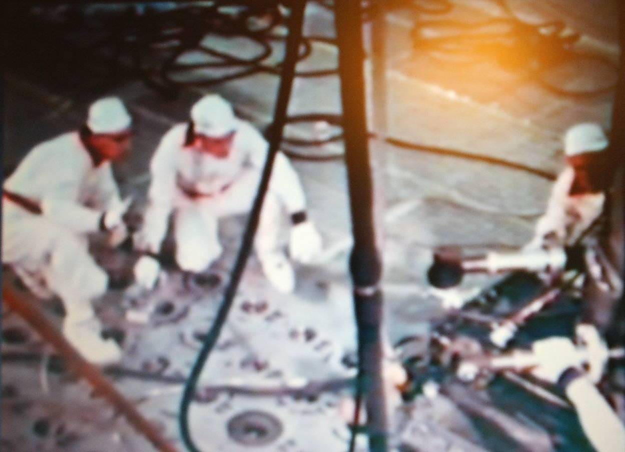 "They built a special piece of equipment that would ft over the large plug and remove it so they could remove the small pieces. This was the first time anything like this had been done before. This is how far they went to repair the reactor."