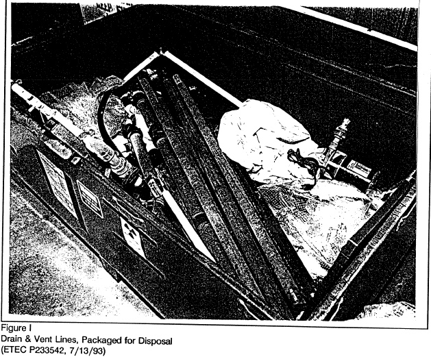 "In 1990 the high-efficiency particulate air (HEPA) filtration system and fume hoods were removed. The remainder of the radioactive liquid waste system (pipes, drains, tank) were removed in 1993."